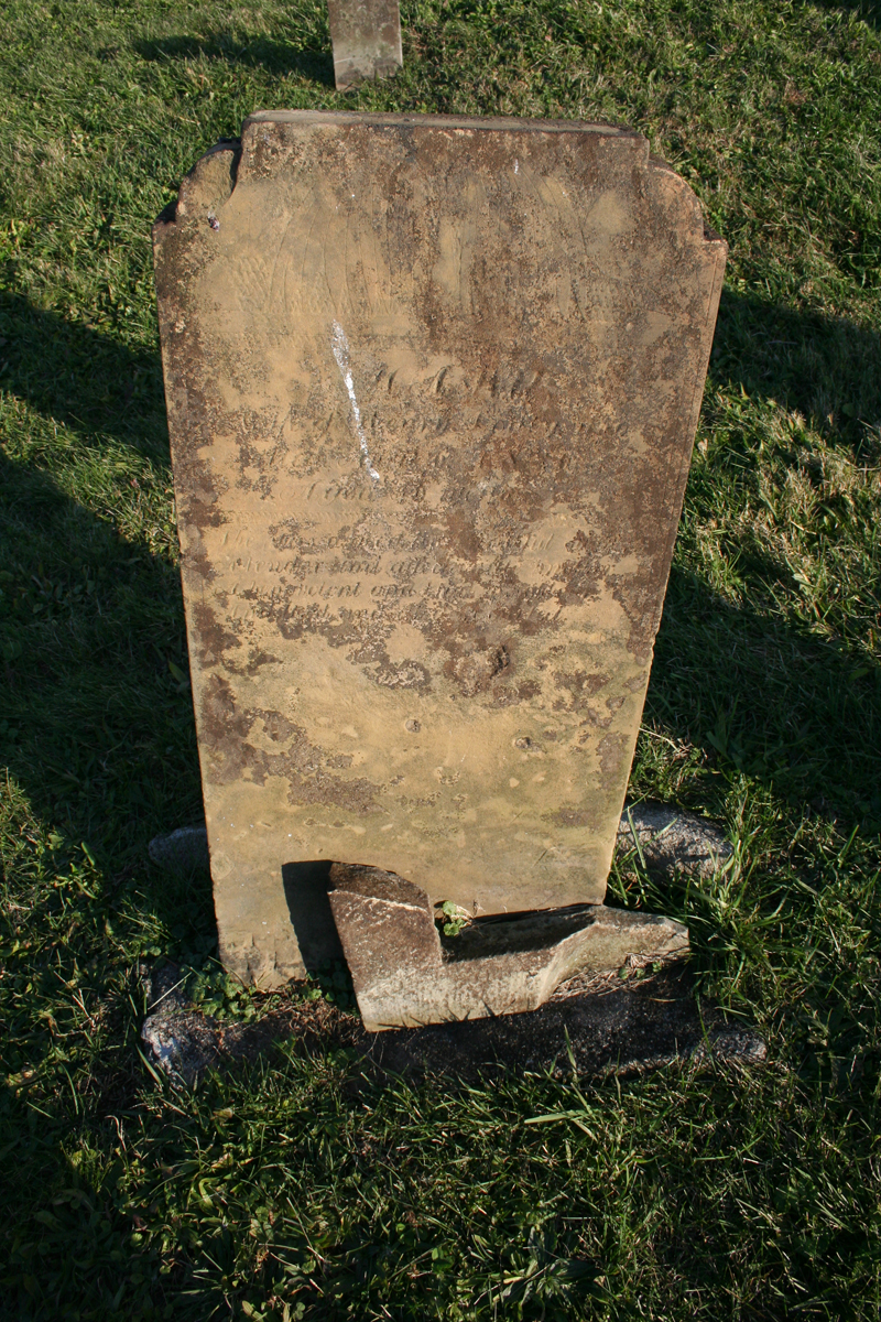 Click Here for a complete list and photos of all standing tombstones as of November 7, 2009.