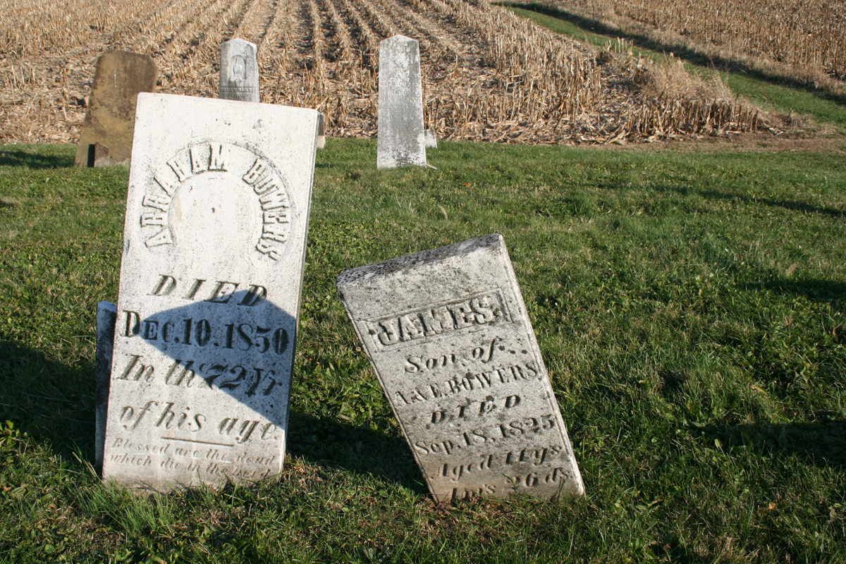 Bowers Cemetery is located in a farmer’s field 900 feet east of Allen Road; Fairfield County.