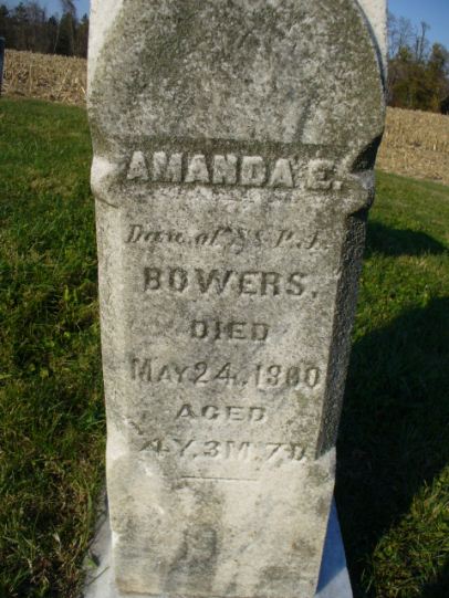 | Bowers, Amanda E. | Dau. of S. & P. A Bowers | Aged 4y 3m 7d | 24 May 1900 |
