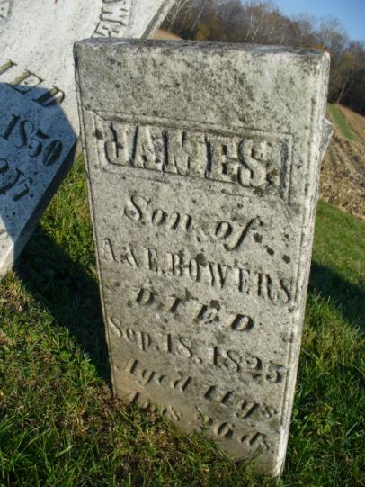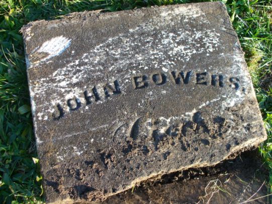 This is a complete list of standing tombstones during our visit on November 7, 2009. To see our page about Bowers Cemetery, click here.