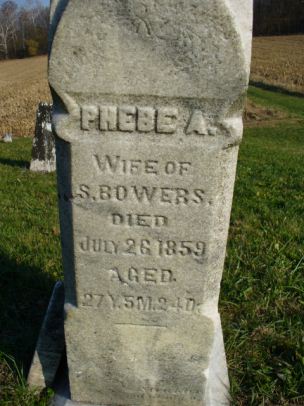 | Bowers, Phebe A. | Wife of S. Bowers | Aged 27y 5m 24d | 26 Jul 1859 |