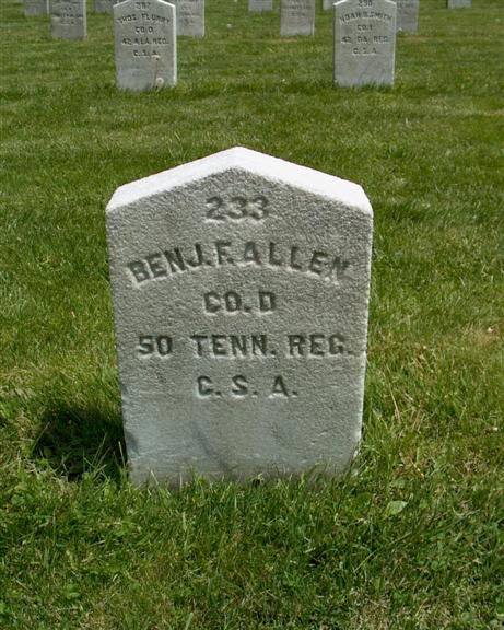 The cemetery is said to be haunted by the Lady In Gray, believed to be Louisiana Ransburgh Briggs. Ms. Briggs sympathized for the Southern cause and would go to the cemetery late at night to place flowers on the graves of the fallen Confederate soldiers. Since this was an unpopular belief to hold in Columbus, she wore a black veil to conceal her identity. It seems that Ms. Briggs continues her routine in death. Fresh flowers mysteriously appear at the tombstone of Benjamin Allen of the 50th Tennessee Volunteers on a regular basis. Eyewitnesses have spotted a veiled woman wearing gray who seems to vanish when further investigated. Some have reported seeing ghostly Confederate soldiers in the cemetery. Crying has also been heard on many occasions. Once during a Civil War re-enactment, many participants heard the crying which was followed by a huge gust of wind that blew over tables and tents. Many believe it was the Lady In Gray.