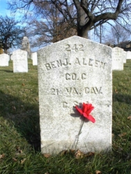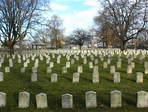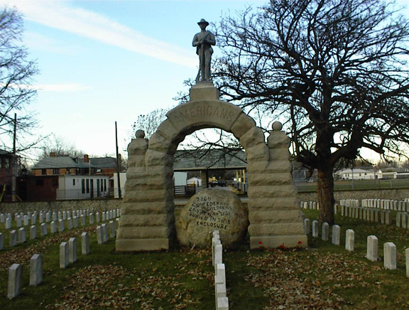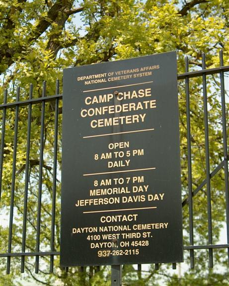 The OES visited Camp Chase Confederate Cemetery on November 10, 2001 and have returned several times since. Camp Chase was a Civil War camp that was established in May 1861. While the camp originally was much larger, the cemetery today is about the size of a football field. Camp Chase served as a training camp for Ohio’s soldiers, a parole camp, a muster-out post and a prisoner-of-war camp. More than 150,000 Union troops and over 9,400 Confederate prisoners passed through Camp Chase between 1861 and 1865, when it closed at the end of the war. All of the building were dismantled, and the wood was used to mark the graves of the 2,260 Confederate prisoners buried in the cemetery. The first memorial service was held there in 1895 and a history of the camp was written in 1906. The memorial arch at the center of the cemetery was erected in 1902.