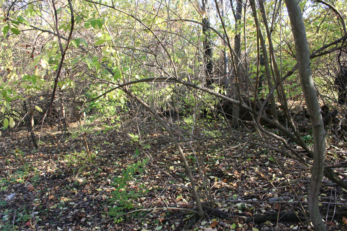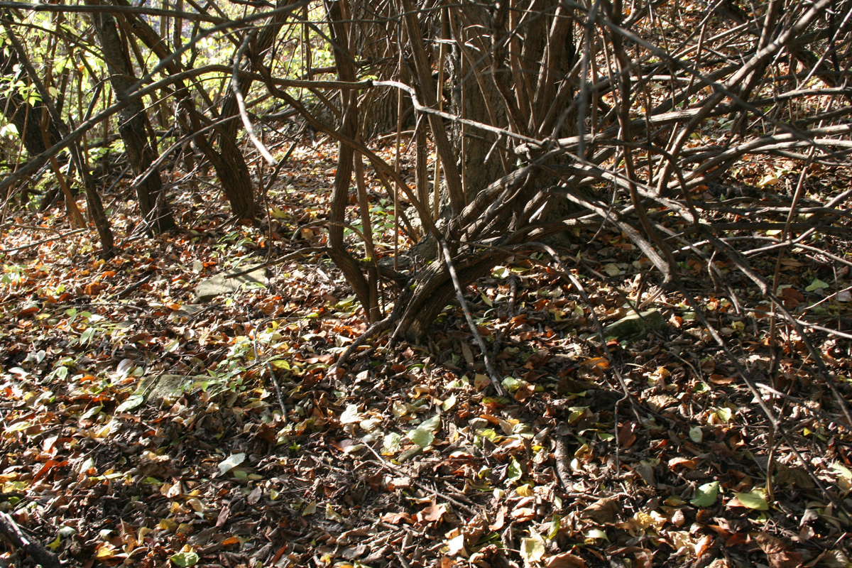 The OES visited Dell Ruse (Feasel) Cemetery on November 8, 2009. Located on a small hill near the intersection of Hines and Refugee Roads, the cemetery was often mistakenly called Dell Rose Cemetery. It was most likely established around 1822, when a Conrad Feasel was buried there, according to family records. During our visit, the entire hill was overgrown with brush, making it difficult to determine the exact location of the cemetery. After a bit of searching, we discovered a few remnants of tombstone about 350 feet northwest of the intersection. The remnants were scattered about and were obviously not in their original locations. No inscriptions could be read on any of the remaining tombstones. After a bit of a search, we found out why the cemetery was in such horrible shape. Dell Ruse Cemetery had been relocated.