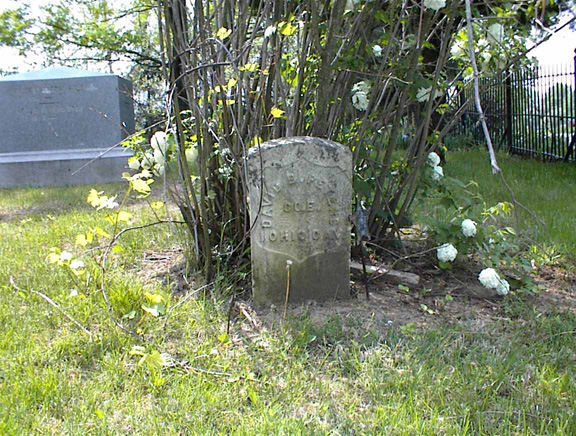 The OES visited Ebenezer Cemetery on May 7, 2001. Also known as Ebenezer Methodist Episcopal Cemetery, we stumbled upon this burial ground on Johnson Road, west of Norton Road, while searching for the infamous Woolyburger Cemetery. Most of the tombstones at Ebenezer Cemetery were in good condition. The oldest tombstone we found dated to 1845 while the newer graves were from the early 1900s. There were several Civil War veterans buried within the cemetery along with veterans from later wars. Records indicate that the Girl Scouts had removed and cleaned some of the broken tombstones in the early 1950s, so there could be some unmarked graves or mis-located tombstones. The cemetery is currently maintained by Pleasant Township trustees.