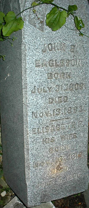 There is a local legend, with several variations, about a woman named Elisabeth whose tombstone moves to different locations within the cemetery. In one variation, Elisabeth hanged herself from a tree located in the rear of the cemetery. A second variation states that Elisabeth was either hanged, beheaded, or a combination of the two by a group of men who were angry about her inheritance of her late husband’s land. This also took place near the tree in the rear of the cemetery. In any case, her body was buried at the front of the cemetery, but her tombstone constantly moved to the place where she died in the rear of the cemetery. According to records, there are thirteen women named Elisabeth or Elizabeth buried at the cemetery. Of those thirteen, there are at least two who died after their husbands, Elizabeth Clark and Elisabeth E. Eagleson. We know that one of the thirteen died before her husband, Elizabeth W. Eagleson, thus eliminating her as the infamous Elisabeth.