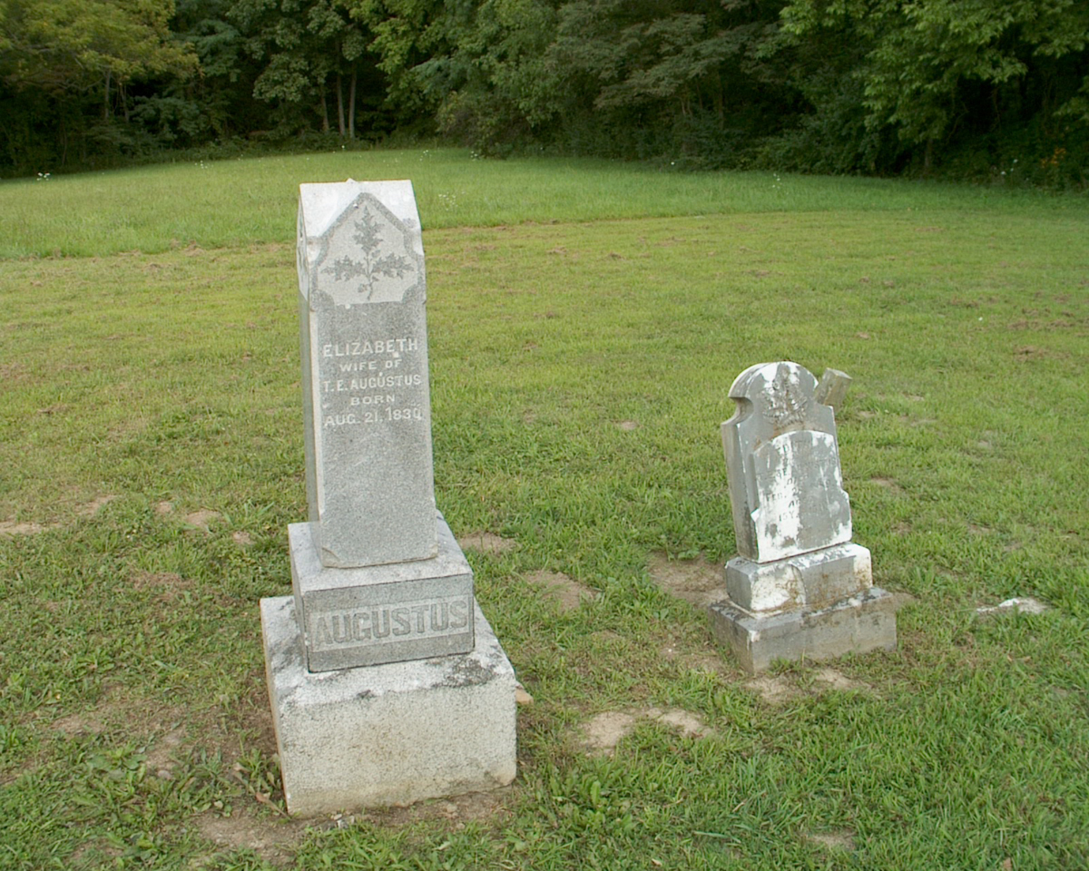 The tombstone on the left belonged to Elizabeth Augustus. Even though no date of death was listed, records indicate she died on April 7, 1927 at about 97-years-old. The tombstone on the right belonged to her daughter Edith, who died at 15-years-old on February 28, 1889.