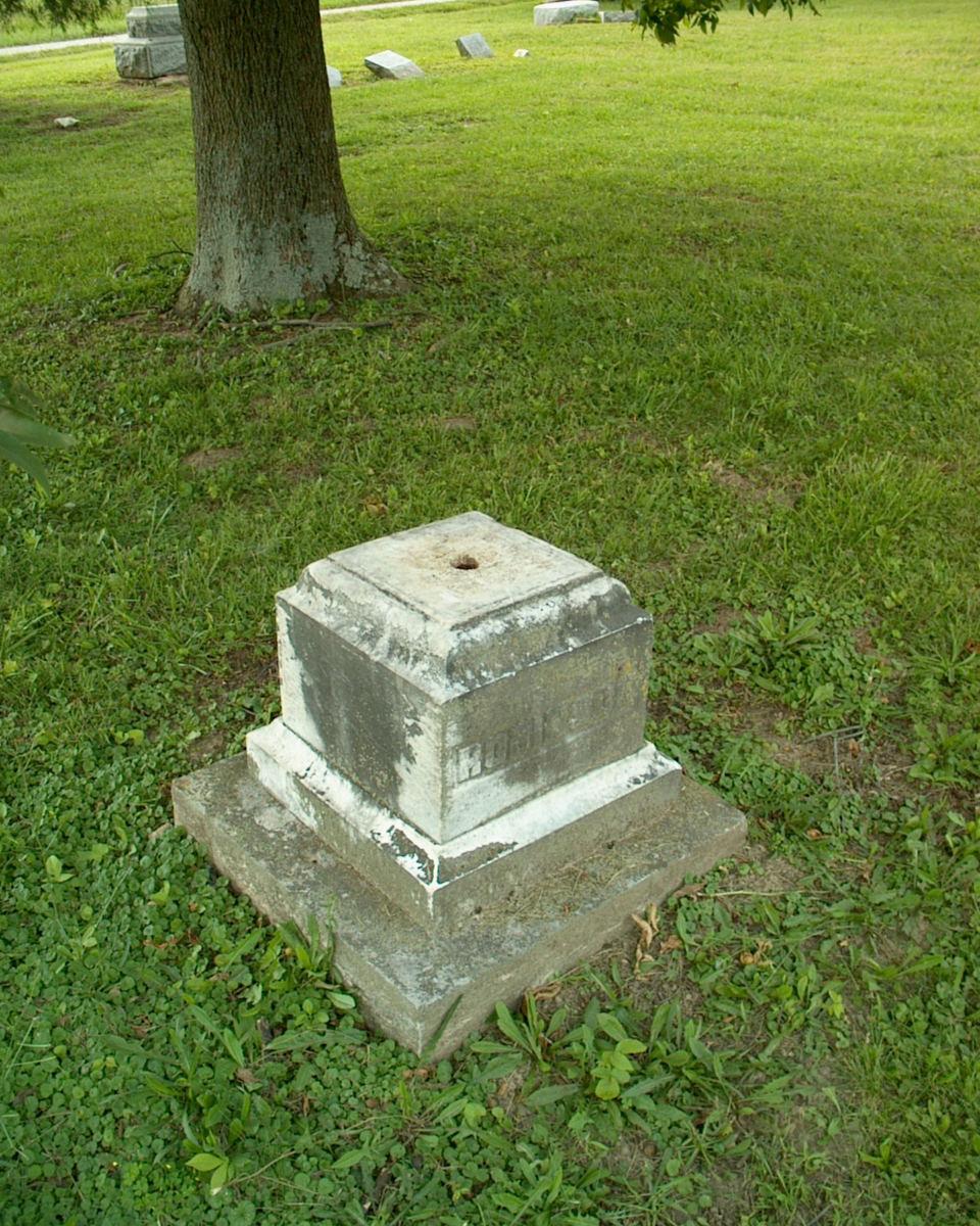 The base of the tombstone for one of the nine Robinson family members buried in the cemetery.