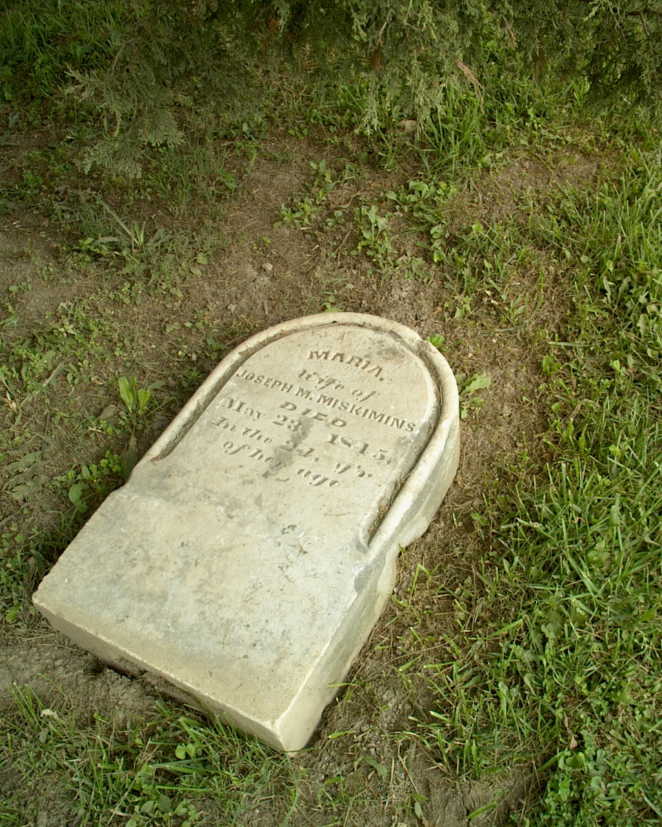 Although it was knocked over, Maria Miskimins' tombstone was well preserved. She died at 24 on May 23, 1845.