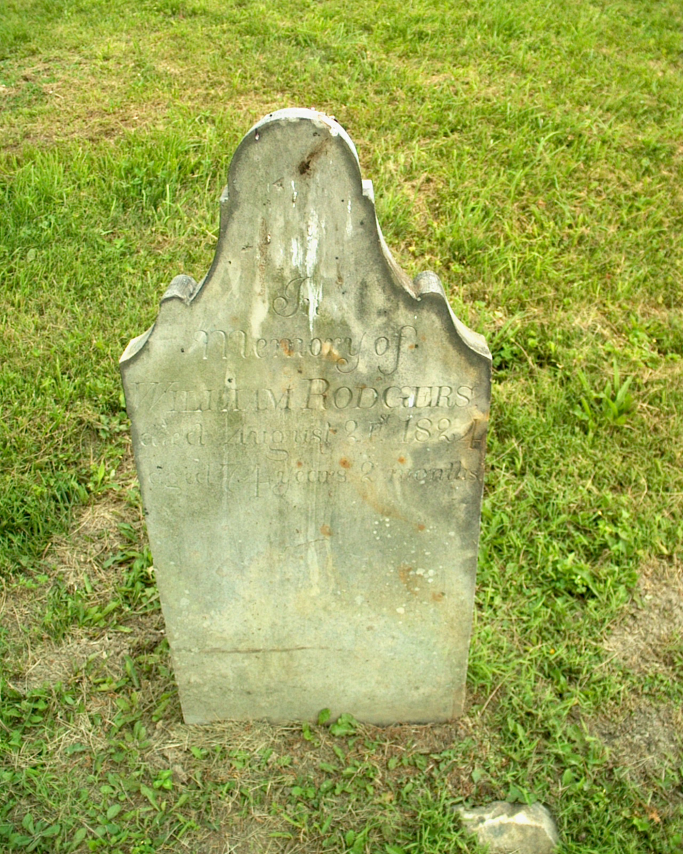 The tombstone of Revolutionary War veteran William Rodgers. Born in 1750, William died on August 21, 1824.