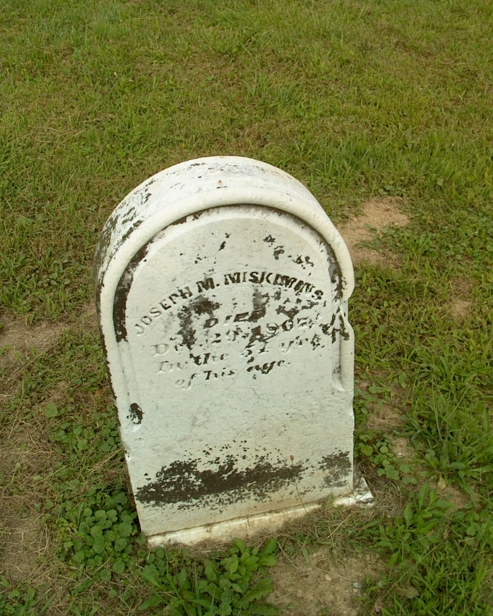 The tombstone of Maria's husband Joseph Miskimins. He died 22 years after his wife on December 29, 1867.