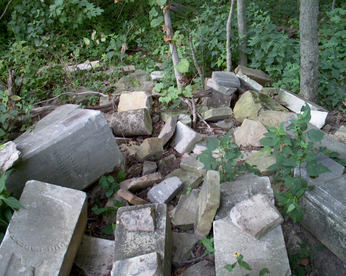 It seemed there were more broken stones in the pile than standing in the cemetery.