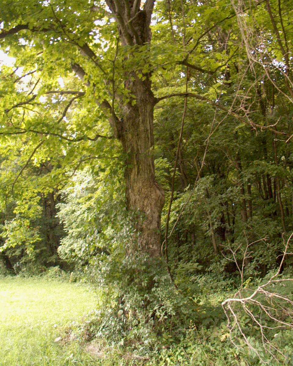 This tree next to the tombstone pile was probably too young to have been where Elisabeth was supposedly hanged.