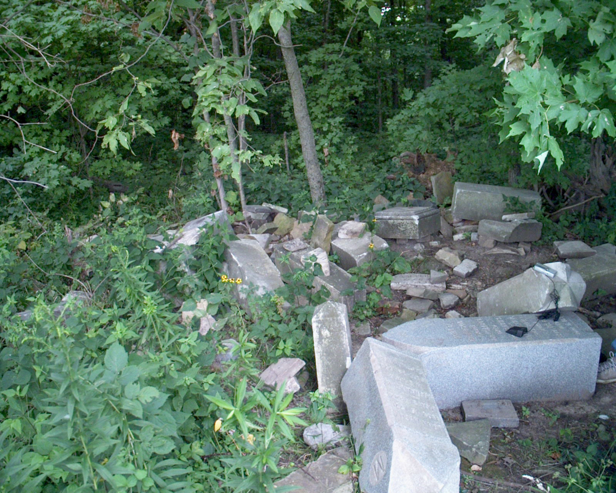 There were still a few tombstones standing, but most were damaged or vandalized.
