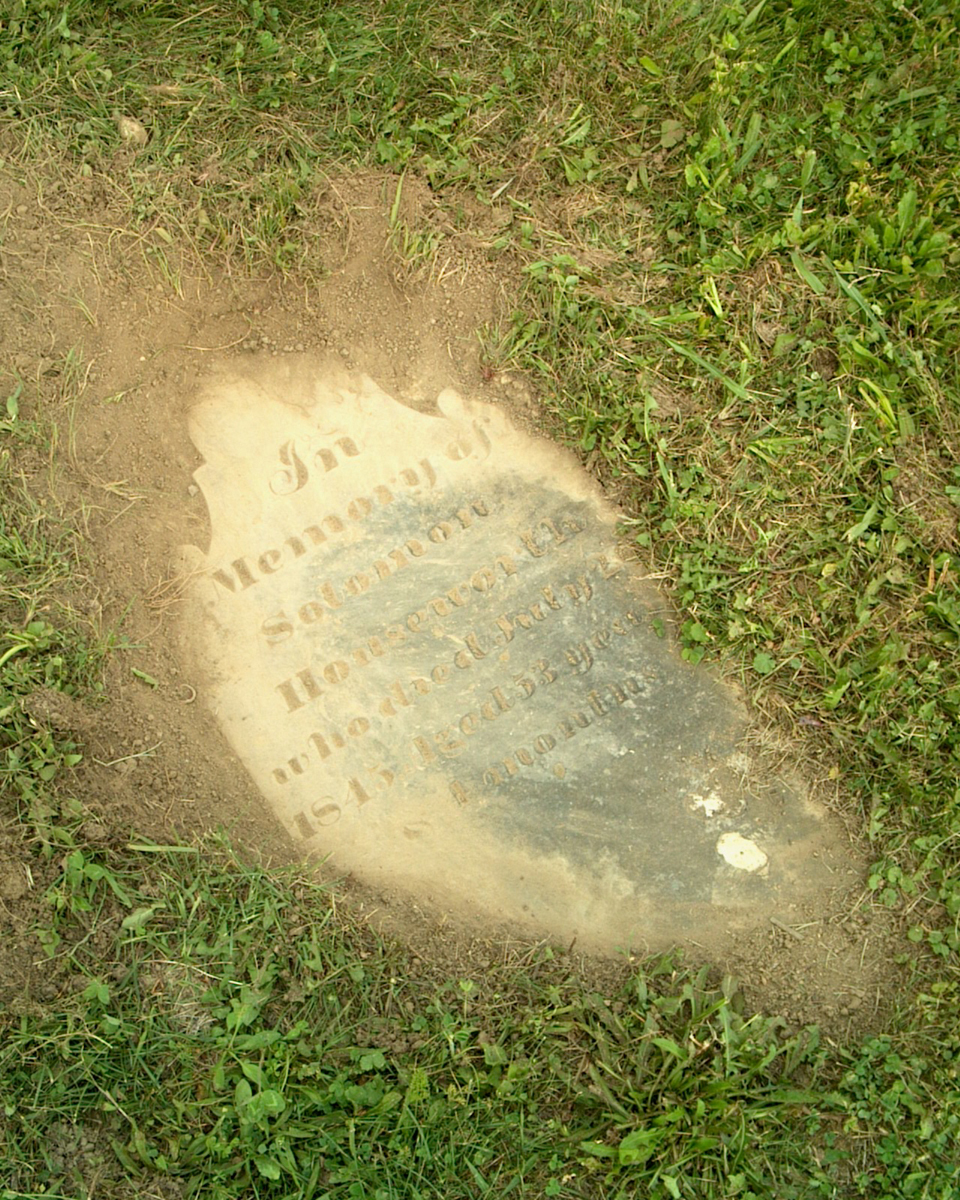 This tombstone was partially buried. We uncovered it and found that it belonged to Solomon Houseworth. Solomon died on July 20, 1845 at 53-years-old.