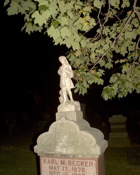 Located in the newer section, this stone Karl Becker and his wife Rachel combined a newer granite marker with a sandstone statue.