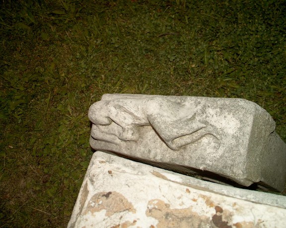 A sleeping statue was atop this gravestone.