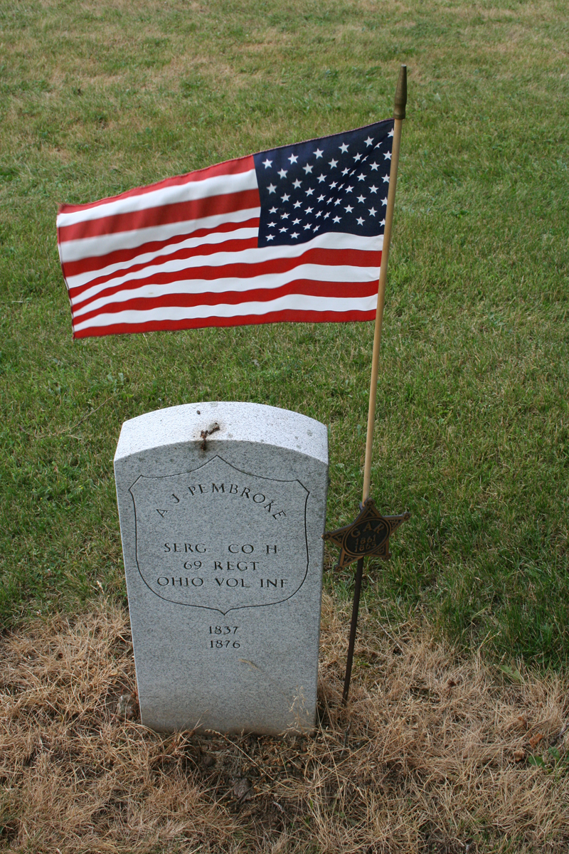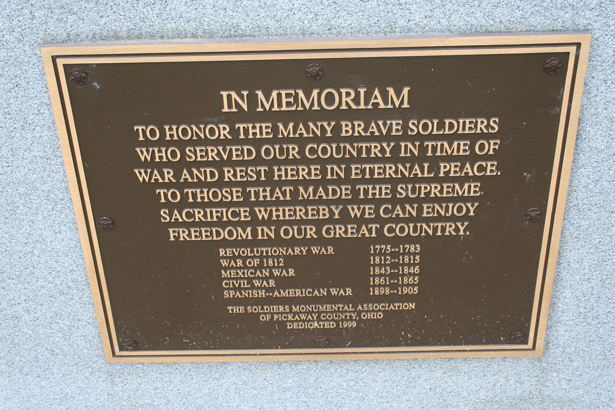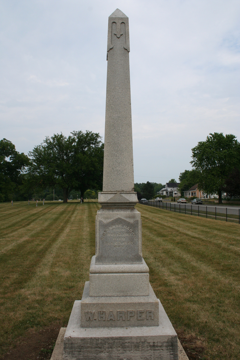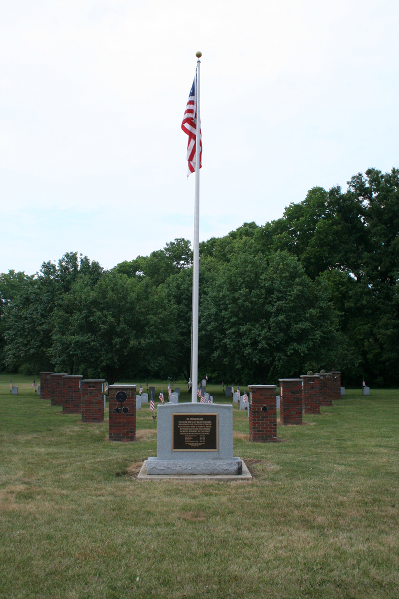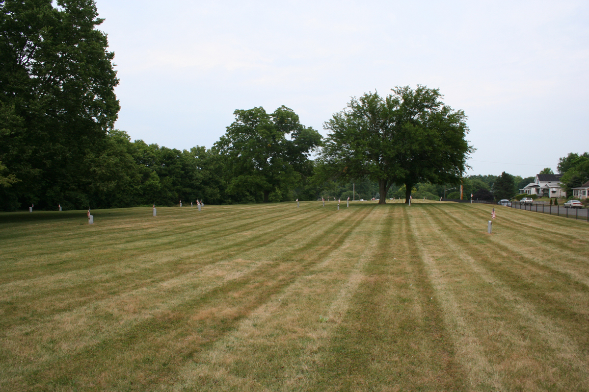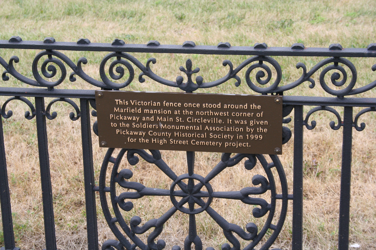 The OES visited High Street Cemetery on June 24, 2007. Established in 1831, this cemetery is located on High Street in Circleville. The cemetery contained markers for the war veterans buried there from the Revolution through the Spanish-American War on our visit. the cemetery was the second burying ground in Circleville and was known as the Old Circleville Cemetery. It was established by the town council when the five acre tract was purchased on March 19, 1831. According to Ohio Cemeteries by the Ohio Genealogical Society, all but one stone was removed by the city and dumped at the creek bank because many of the stones had become broken and unreadable. We are not sure when this occurred. A memorial plot was built in the shape of a “V” in honor of the veterans buried within the cemetery. We believe the military tombstones were restored in 1999 due to a sign on the fence stating something to this capacity. Inscriptions from the cemetery are available at the Circleville Library, Recorder’s Office and in the Winter 1974 issue of Pickaway Quarterly. If you have any other information about this cemetery or photos before all of the tombstones were removed, please email .