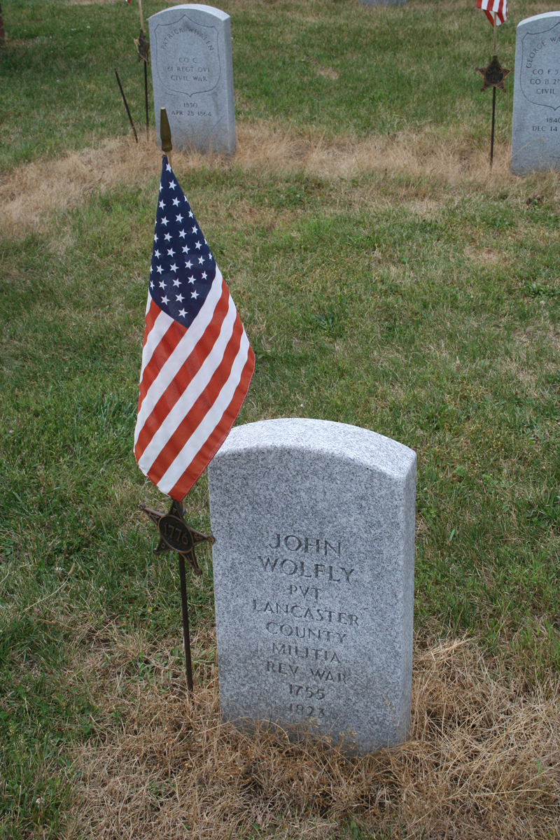 John Wolfly served in the Lancaster County Militia during the Revolutionary War. He died in 1823.