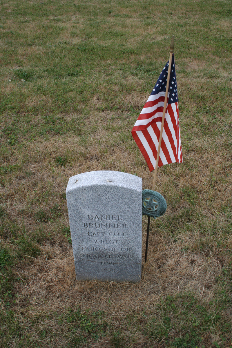 The tombstone for Captain Daniel Brunner, who served during the Mexican War. He died in 1858.