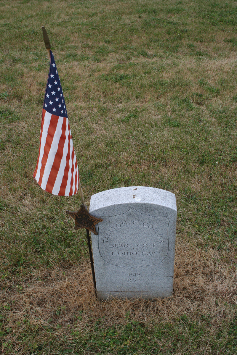 The tombstone of Civil War Sergeant Tarlton Collins. Born in 1819, Tarlton died in 1894.