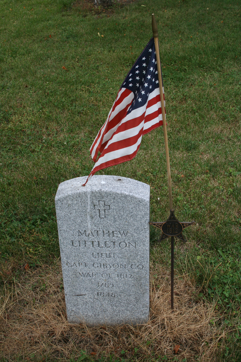 Lieutenant Matthew Littleton's tombstone He served under Captain George Gibson during the War of 1812.