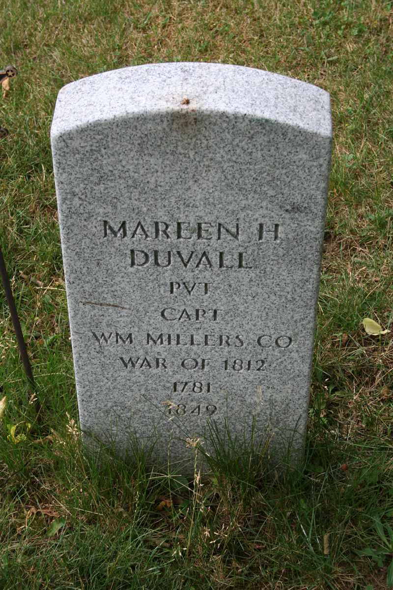 Mareen Duvall served under Captain William Miller's Company during the War of 1812.