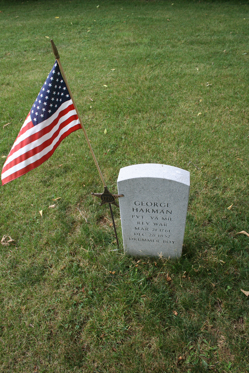 The tombstone of Revolutionary War veteran and drummer boy George Harman. He died in 1832.