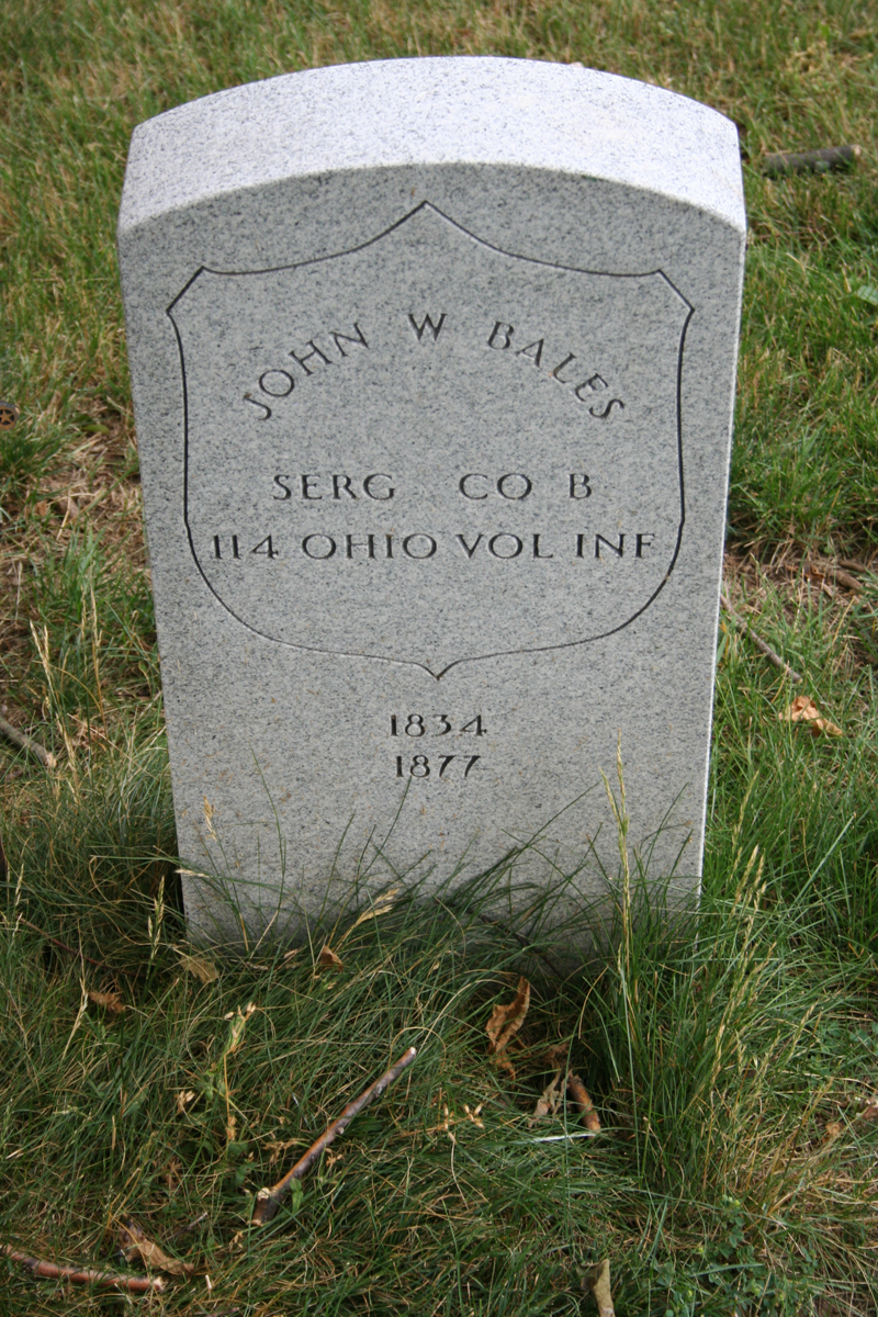 The tombstone for Civil War sergeant John Bales. He died in 1877.