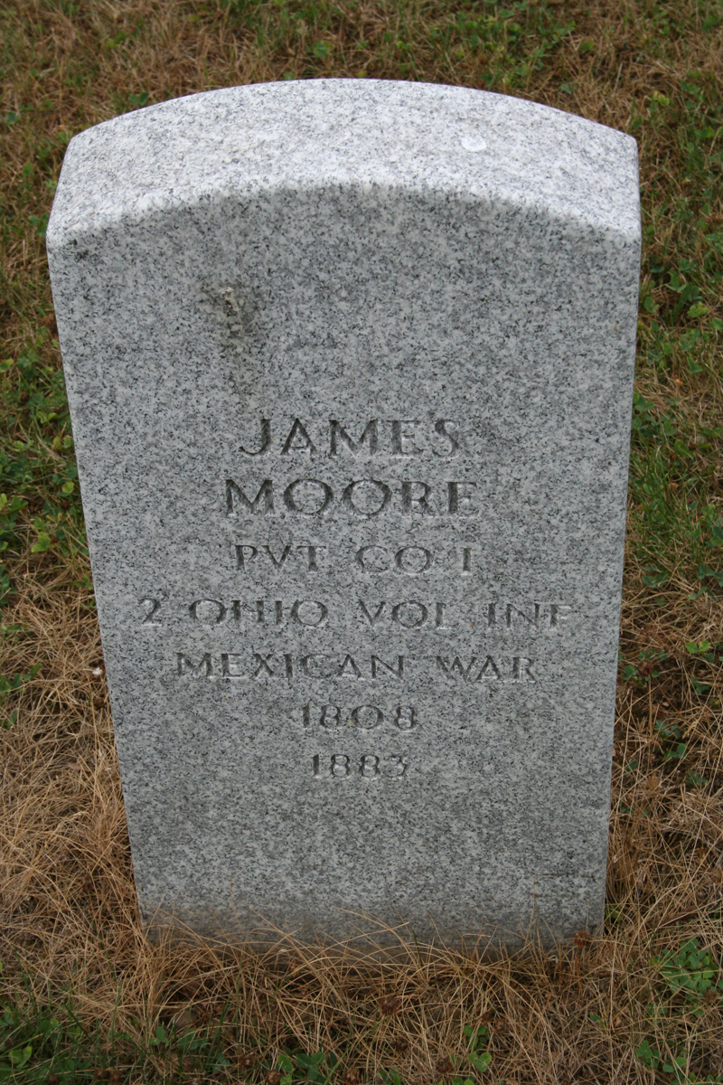The tombstone for Mexican War veteran James Moore, who died in 1883.