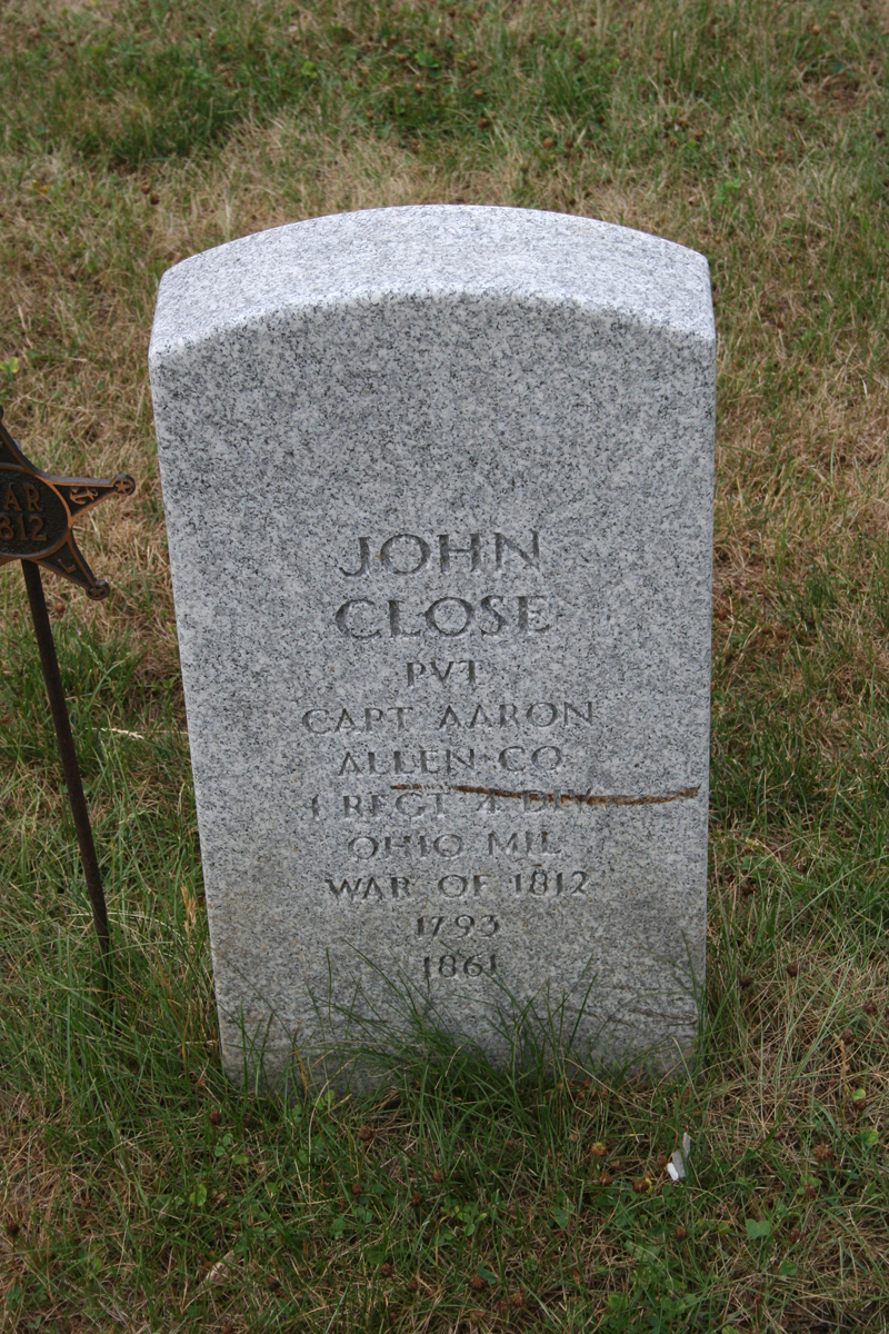 War of 1812 veteran John Close, who served under Captain Aaron Allen's company.