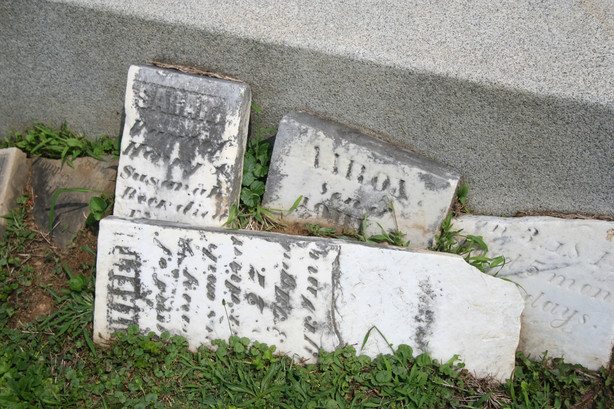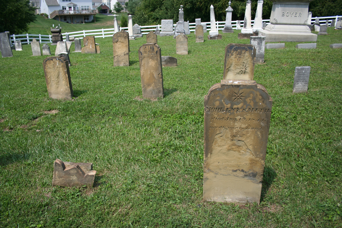 Some of the older sandstone markers in the cemetery. The closest stone belonged to Modlany Smith, who died in 1844.
