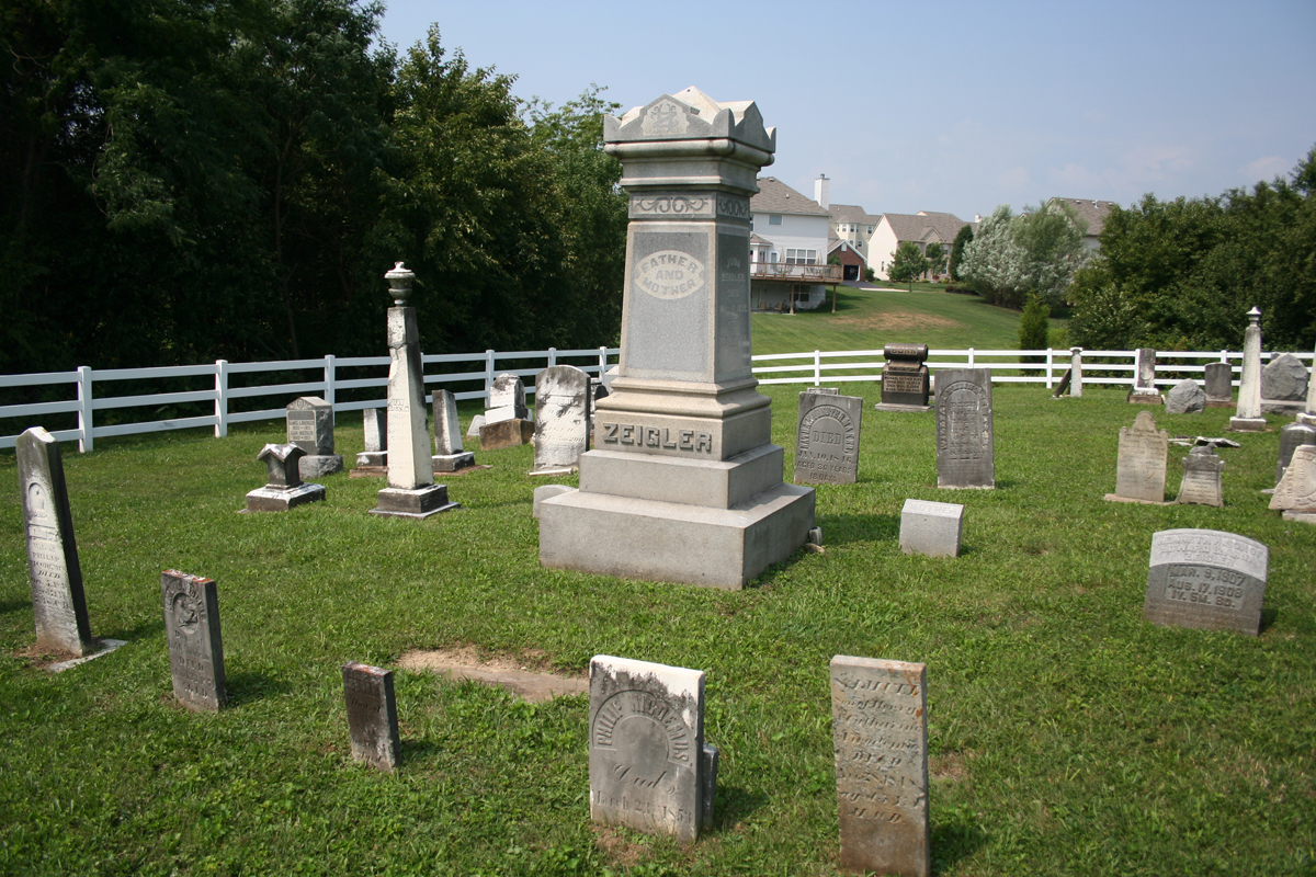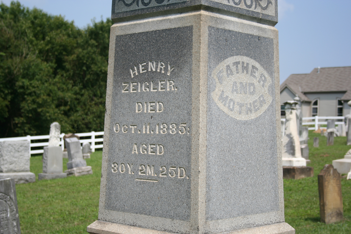 This tall slender tombstone belonged to Job Zieler. He died in 1857.