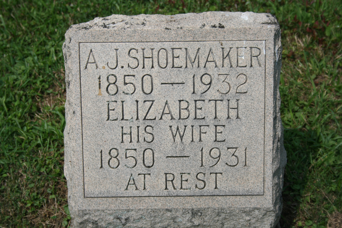 The tombstone of Alfred and Elizabeth Shoemaker. They died within a year of each other.