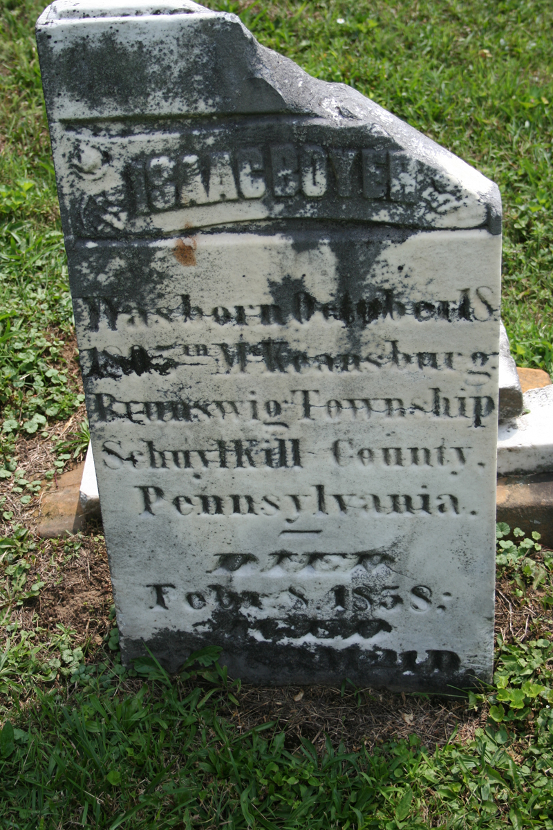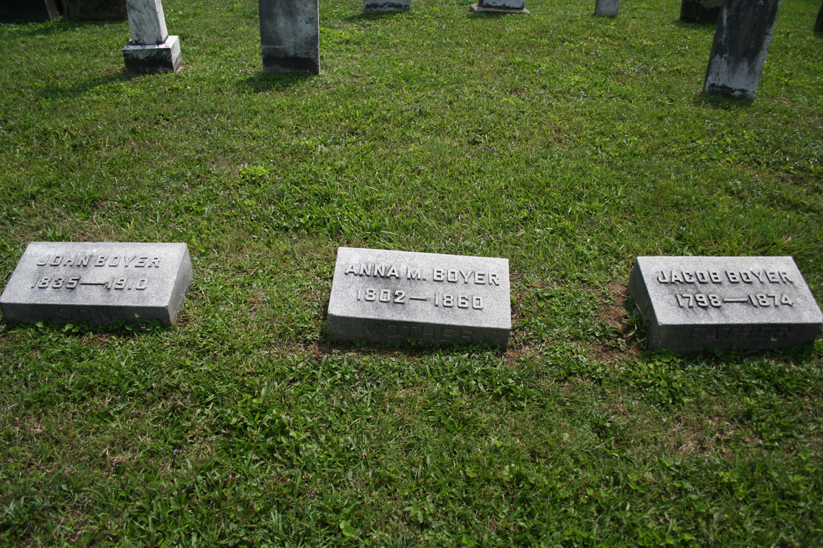 The tombstone of Isaac Boyer stated he was born in Brunswig Township Schuylkill County, Pennsylvania. He died on February 8, 1858.