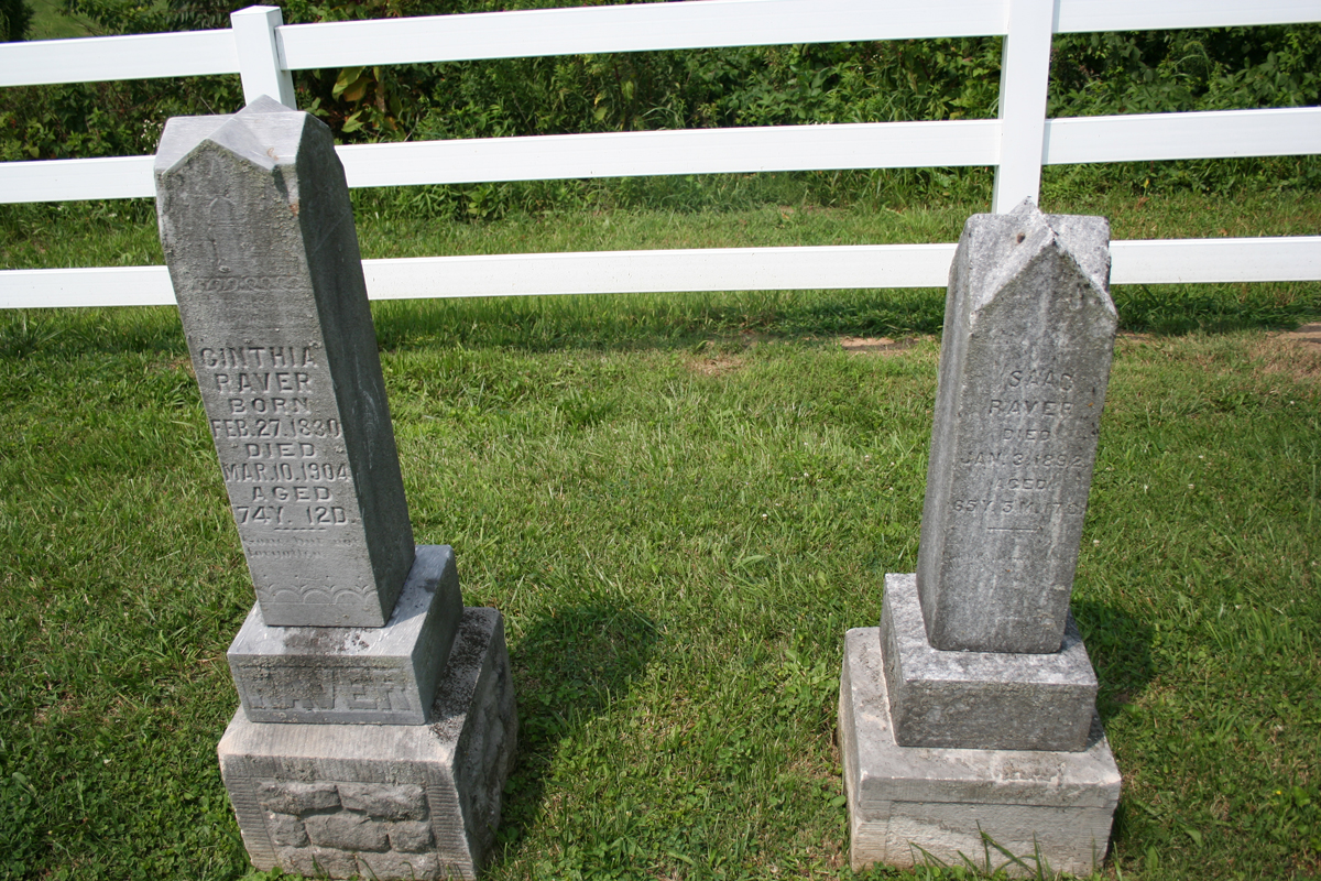 The tombstones of Cinthia (1830-1904) and Isaac (1826-1892) Raver. They had two children.