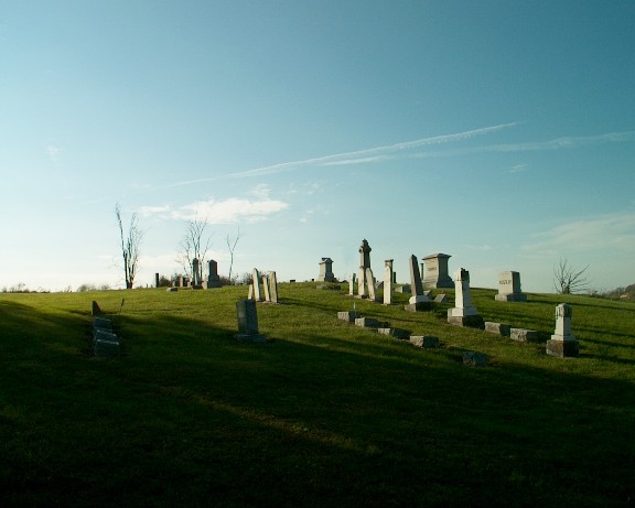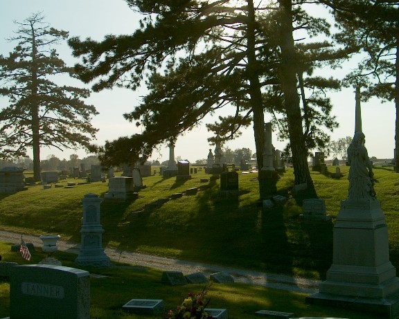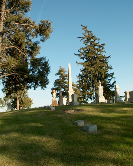 Some tombstones were on a hill in the northwest section of the cemetery.