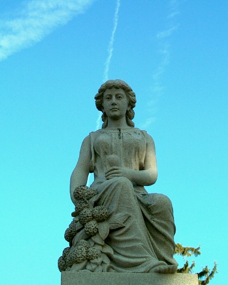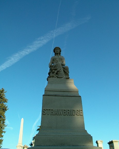 A closer look at the statue atop the Strawbridge monument.