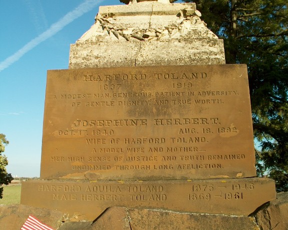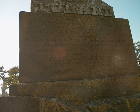 The impressive monument for Dr. Aquila Toland and family.