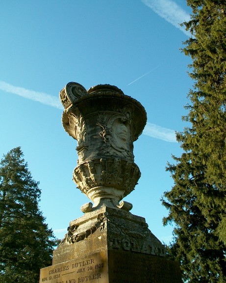 A large trophy-like urn sat at the top of the Toland monument.