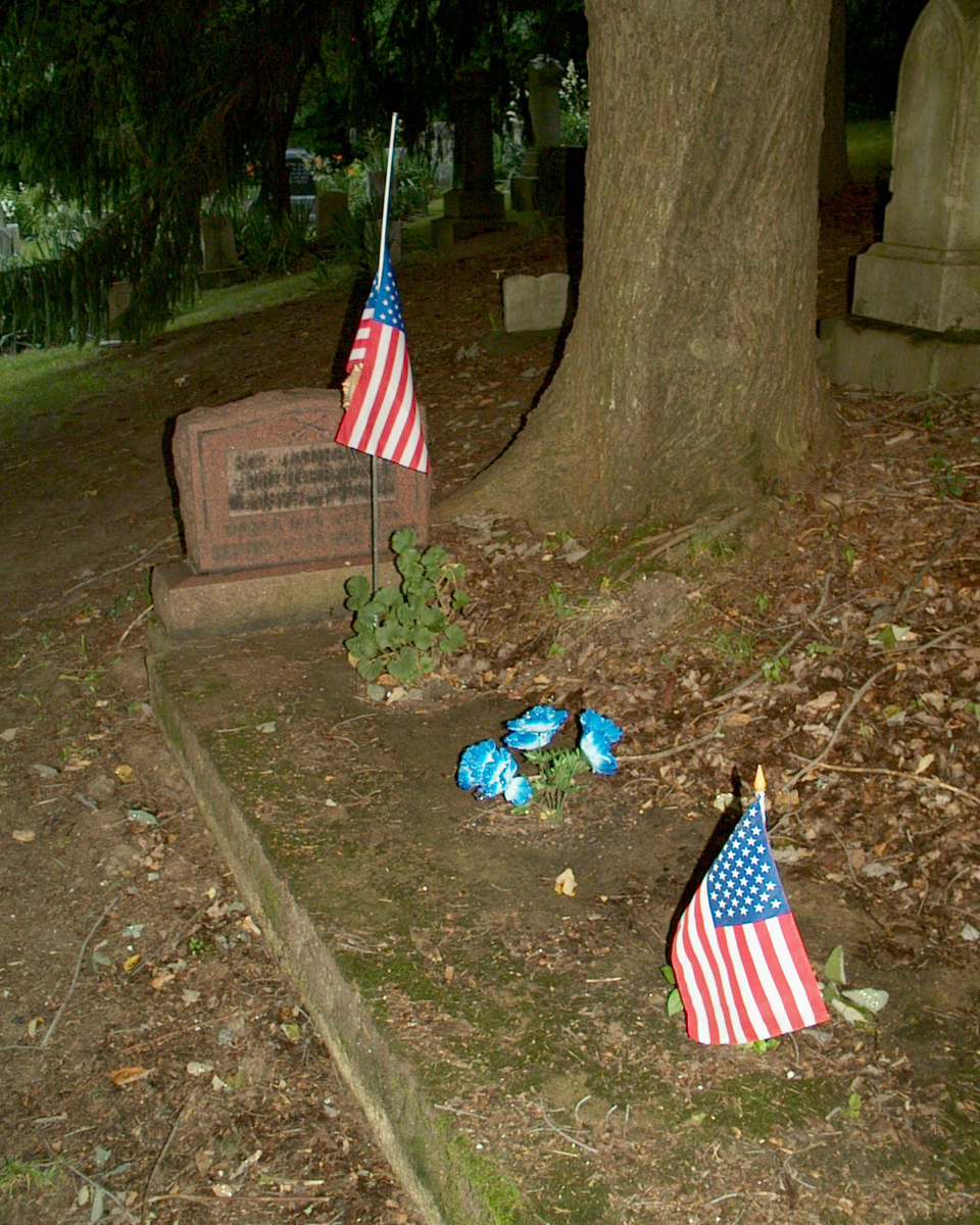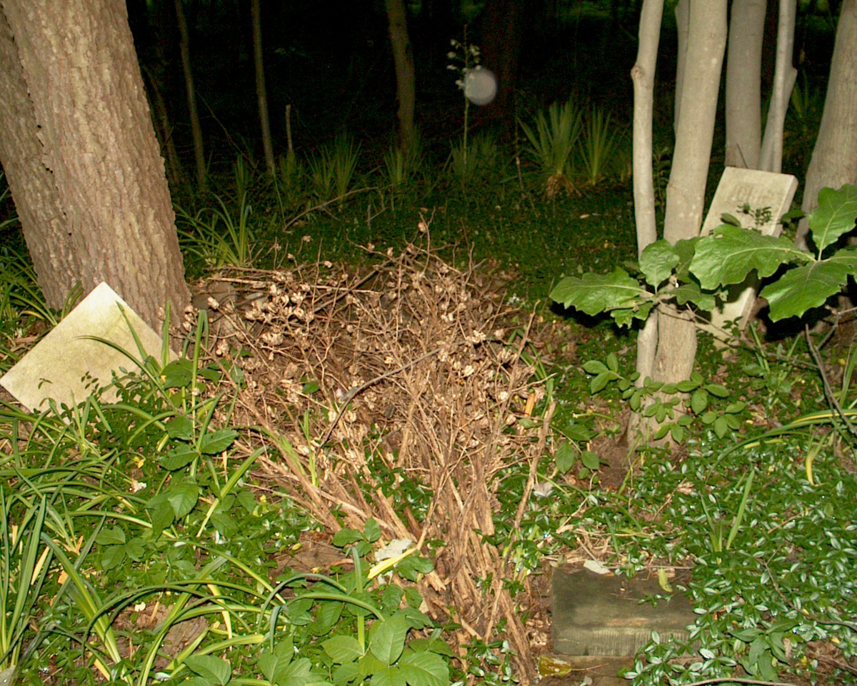 The camera's flash made this tombstone's inscription unreadable.