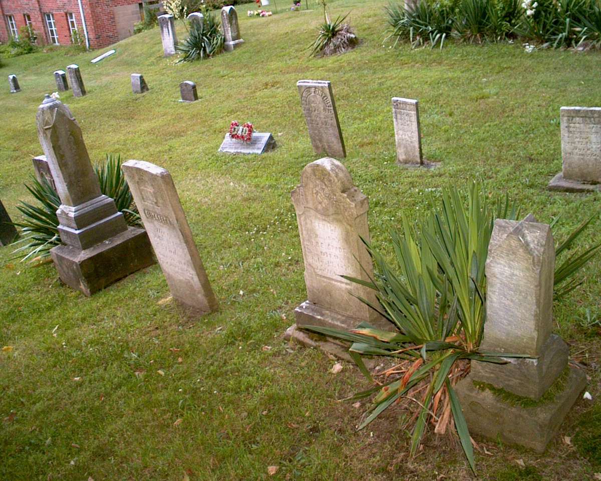 Newer tombstones from the early to mid 1900s were in front of the older 1800s graves.