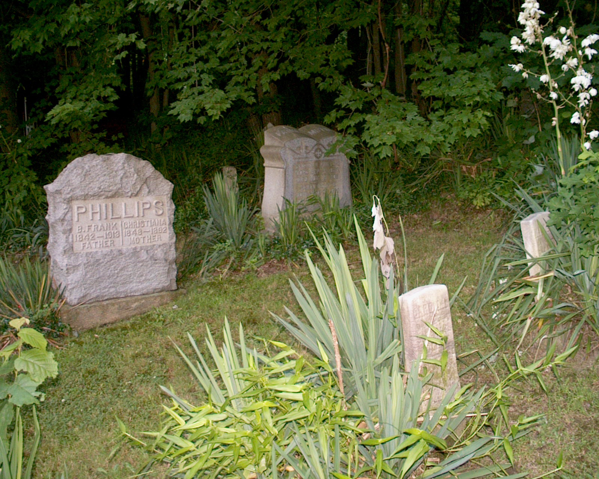 The large tombstone to the left in the rear belonged to B. Frank Phillips (1842-1913) and his wife Christiana (1848-1892).