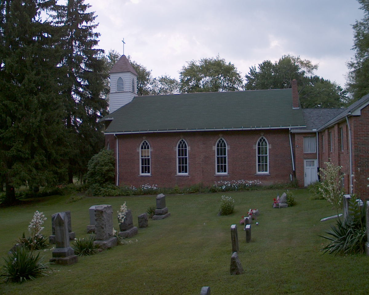 Looking south from the cemetery toward the church.