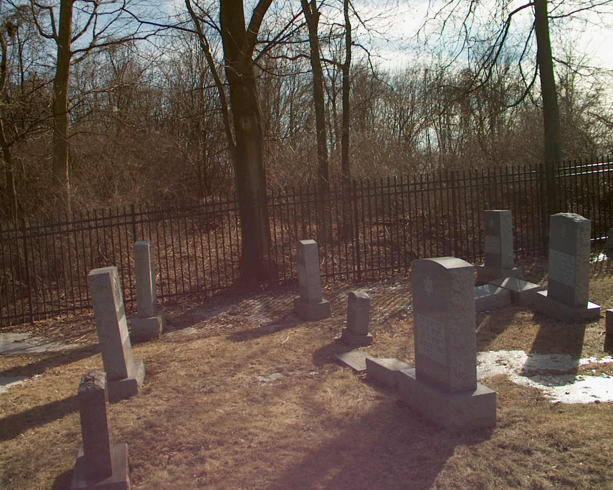 The OES visited Old Agudas Achim Cemetery on February 16, 2004. Also known simply as the Jewish Cemetery, Agudas Achim was established on August 28, 1891, with nearly two acres. The cemetery served as a burial-place for the jewish community for the next sixty years until the New Agudas Achim Cemetery was established in 1952 about one mile south of the old cemetery. Once the new cemetery was dedicated, Old Agudas Achim Cemetery fell into serious disrepair. The cemetery was completely restored to its former glory in 1984 and was in terrific condition when we visited. Many of the tombstones contained both English and Hebrew inscriptions on the front and back of the tombstones. As is tradition in the Jewish religion, many tombstones had small pebbles or rocks sitting atop them. We have visited the cemetery both during the day and at night. There were slightly higher than average electromagnetic field readings near the rear of the cemetery. We also recorded electronic voice phenomenon while walking down a hill near two pine trees during our visits. One OES member even witnessed a shadowy figure inside the cemetery one night. The figure walked behind a tombstone and vanished.