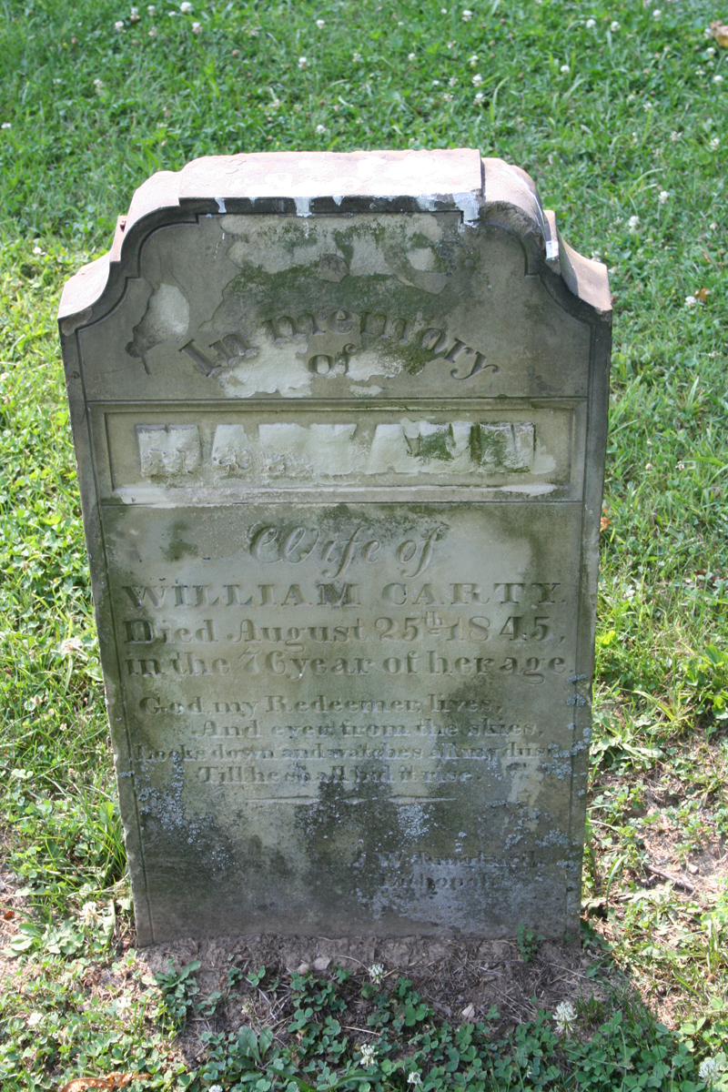 The tombstone of Maryann Carty, the wife of William. She was born in 1769 and died on August 25, 1845 at 76-years-old.