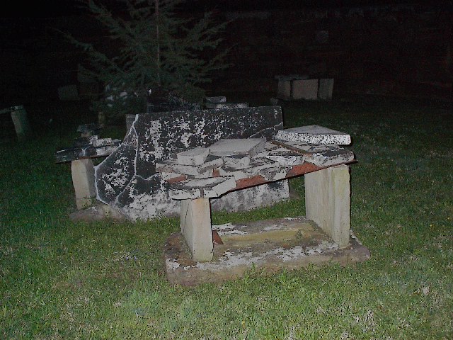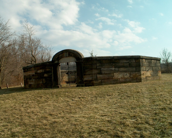 The OES visited Stonewall Cemetery on March 16, 2003. Also known as the Wilson Family Cemetery and the President’s Burying Ground, this unique cemetery was founded in 1817 by Nathaniel Wilson, an early pioneer to Fairfield County. Nathaniel and his son Gustin built a magnificent 12-sided, 8-foot-tall stone wall surrounding their family plot between 1838 and 1839. A cedar of Lebanon tree, imported from Palestine, was planted inside the cemetery as Nathaniel wanted a touch of the Holy Land in his cemetery. The tree eventually died but was replaced by another cedar of Lebanon. The stone wall surrounding the family graveyard is the only structure of its kind in the world, constructed of Blackhand sandstone quarried from nearby Allen’s Knob. Every angle was hand-cut so the stones would fit together perfectly without the use of mortar. The arch directly above the entrance is aligned with the north star, Polaris. Nathaniel Wilson III willed the cemetery to President James Monroe and all future Presidents on April 22, 1817. For many years, Fairfield County officials would notify each new President that he was the cemetery’s trustee. Only one, Franklin D. Roosevelt, ever acknowledged the notification. No President has been buried or has even visited the cemetery. Of course with such a unique cemetery, it is almost guaranteed to have a legend. It is said that if one climbs on top of the wall and walks around it thirteen times, the spirits within will suck them into the circle. Or, perhaps, you just get dizzy from walking in a circle thirteen times and fall in.