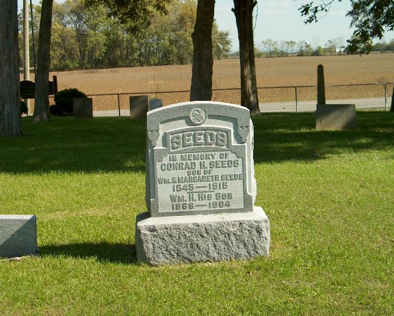 The tombstone of Conrad Seeds (1845-1915) and his son William (1868-1904).