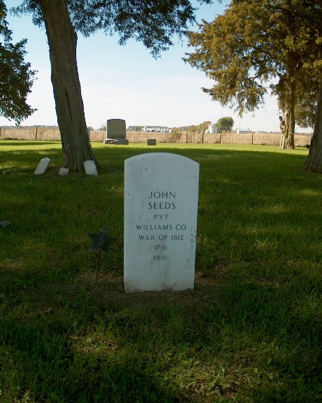 The tombstone for War of 1812 veteran John Seeds. He served with Williams Company during the war. John died in 1841.