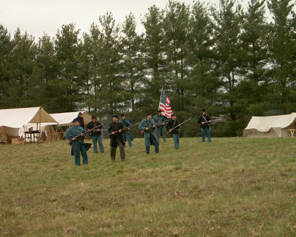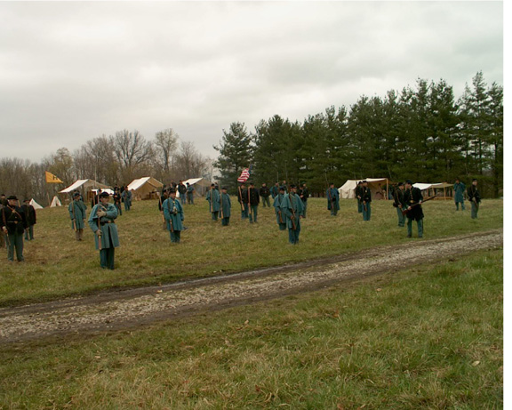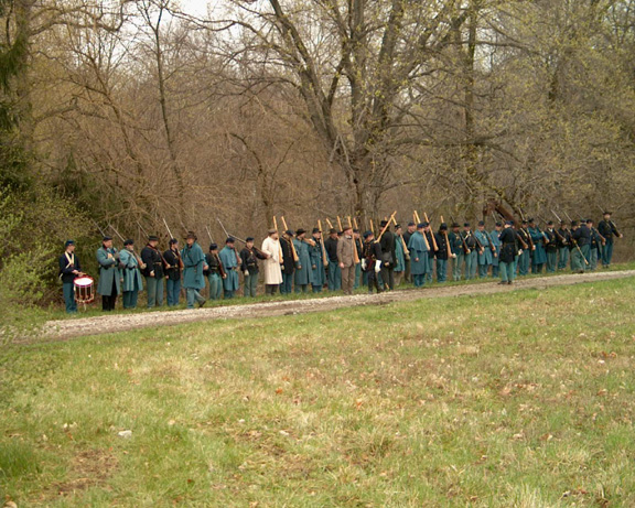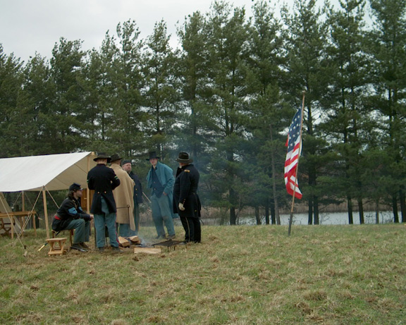 The OES visited the Civil War’s Camp Anderson in April of 1861. Using our time machine, we were transported back in time to watch the 17th Ohio Volunteer Infantry Regiment be formed. The camp was one of the better camps of the Civil War since it was in close proximity to a major town. They had fresh bread, bacon, beef and potatoes, so there was very little sickness. After growing to about 1,000 strong, the 17th Ohio Volunteer Infantry Regiment was ordered to western Virginia, where they found a Confederate recruiting station closing. They secured the area and guarded the railroads. Company A of the regiment served as General McClellan’s personal bodyguards of some time. Although the men only signed on to serve a 90-day enlistment, most of them re-enlisted for three years, and more served until the war came to a close in April of 1865.